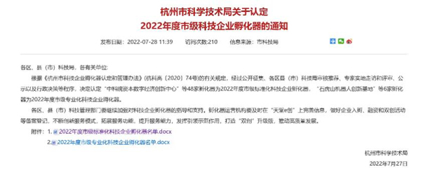 《关于认定2022年度市级科技企业孵化器的通知》